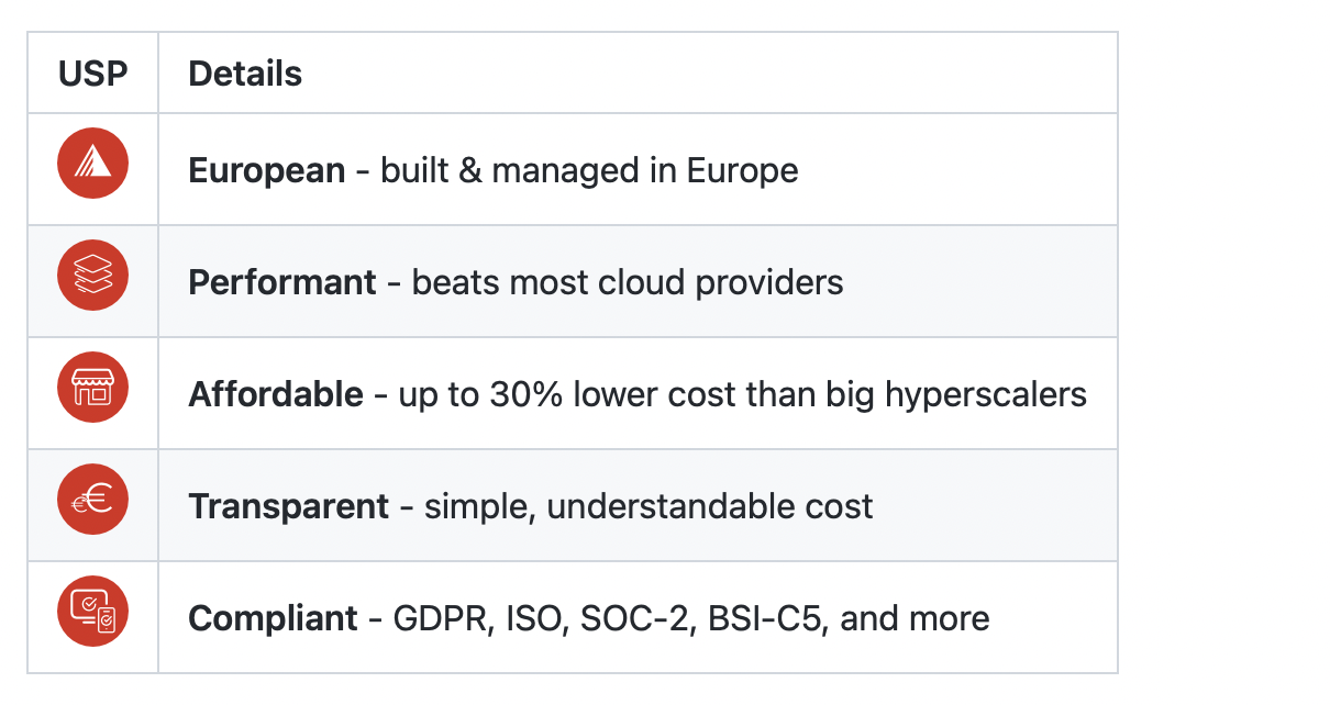 Exoscale is a European cloud company that delivers fast, reliable services at clear, fair prices. Your data stays private and protected under strict European laws. With secure data centers in Europe and easy pay-as-you-go billing, Exoscale is a trustworthy choice for businesses of all sizes.