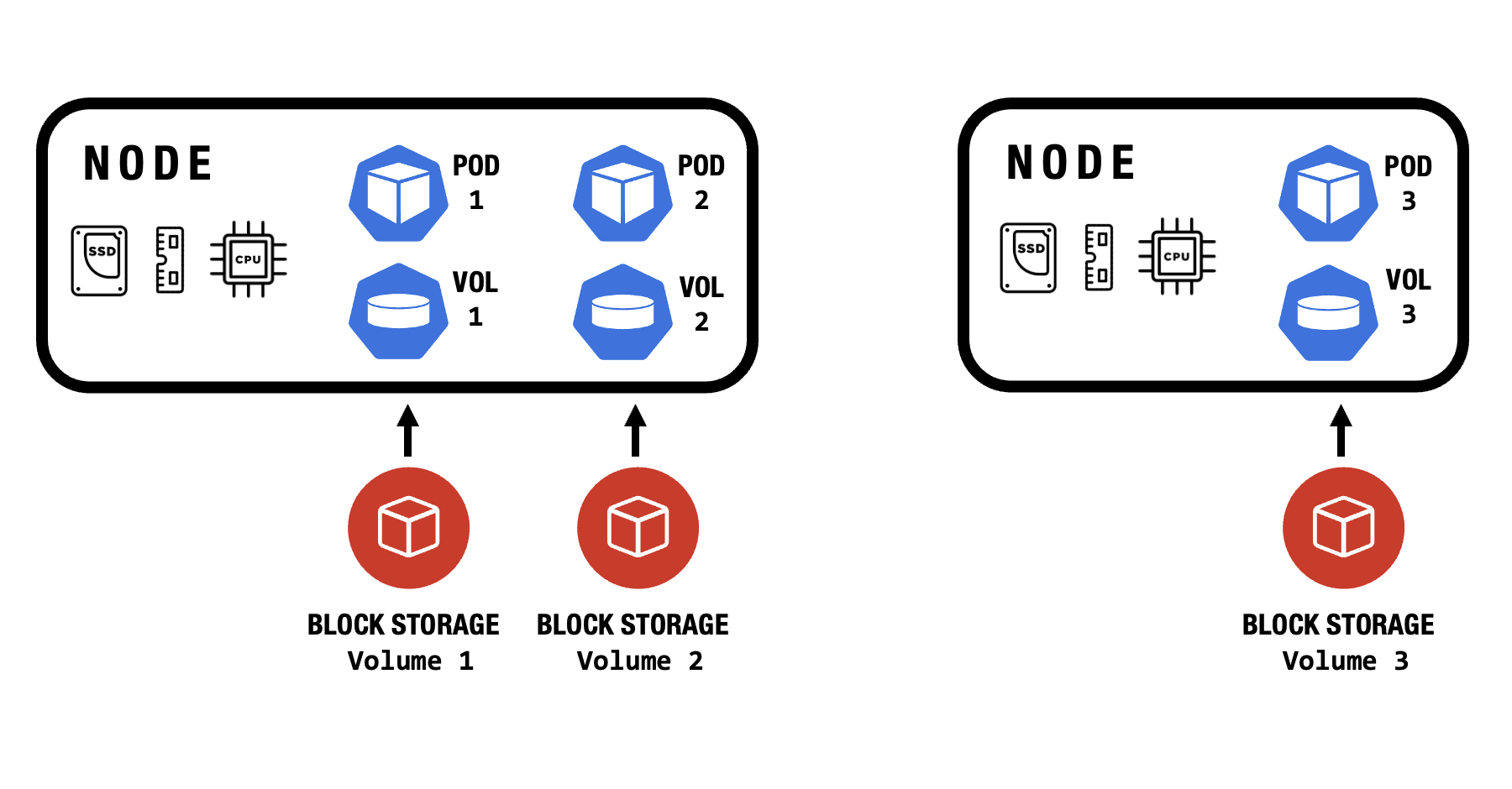 Block storage volumes are persistent and remain available even if the node they are on is deleted or replaced. - High Performance