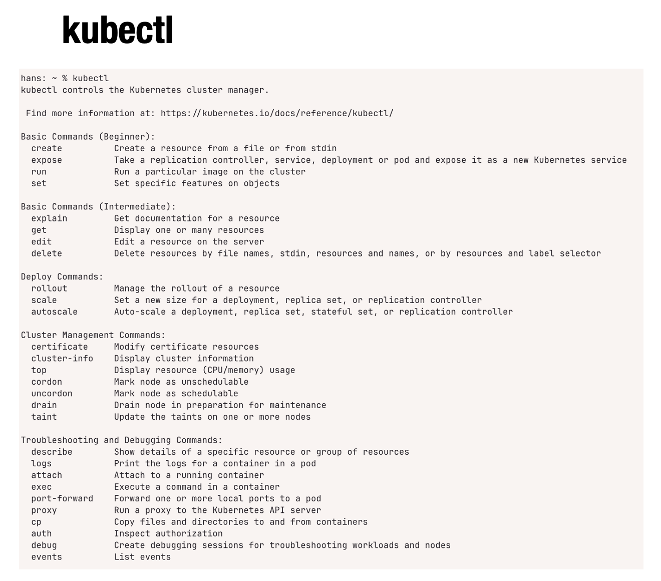 Youβll learn how to check your clusterβs status, list resources, and explore variations of common commands. To understand this new world, let’s examine some simple applications of the kubectl command.
