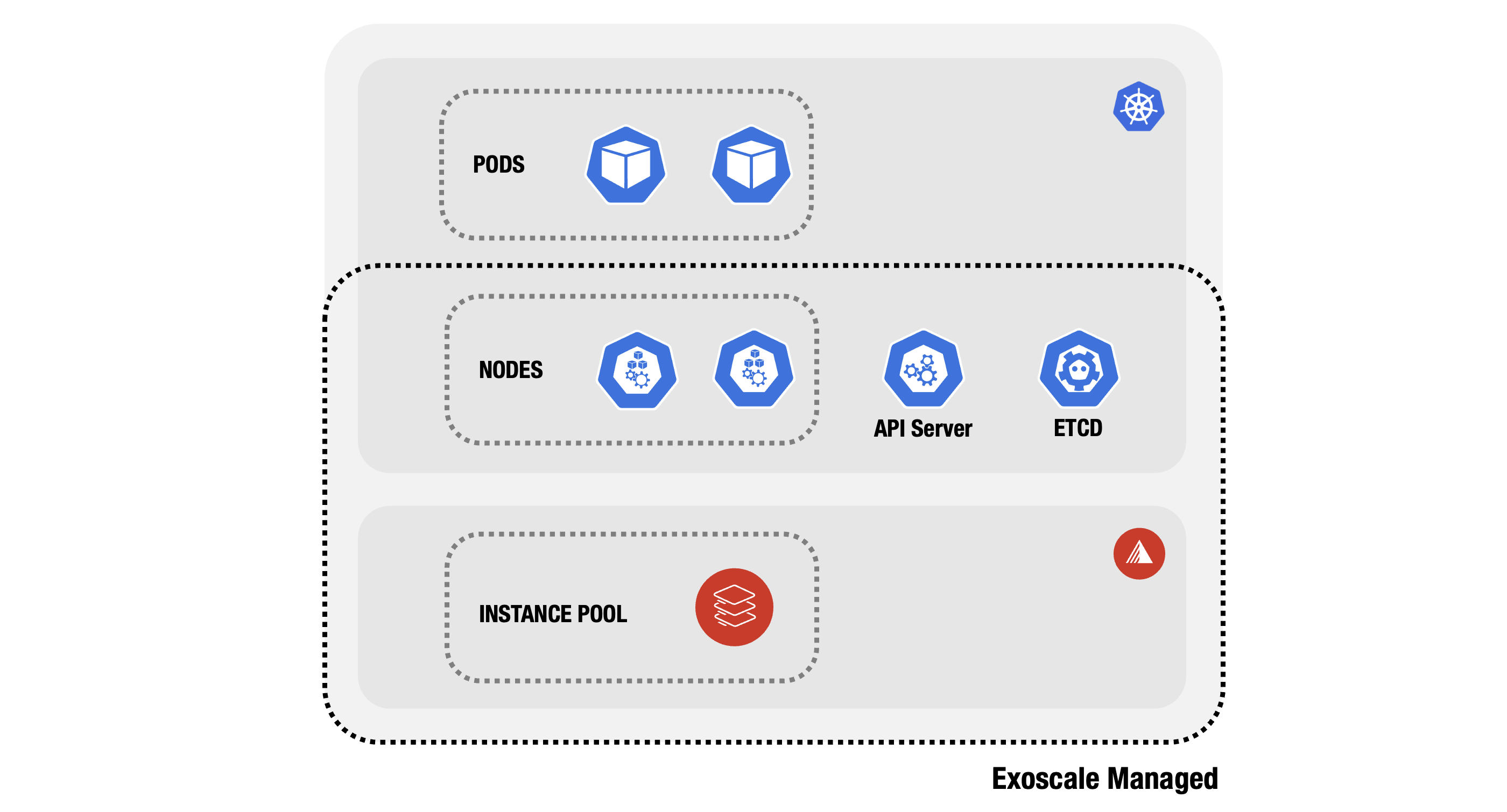 You can size NodePools as needed using any Exoscale instance type. Itβs possible to combine Memory-Optimized and CPU-Optimized nodes within the same cluster for custom performance. - Full Cluster Lifecycle Management